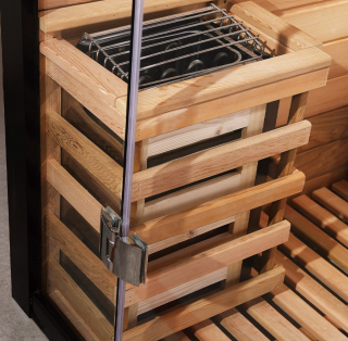 - Lurrun egonkorrako sauna-berogailua: barneko sauna-berogailuak lurrun koherentea eta leuna ematen du, bakarka erabiltzeko aproposa, azkar berotzen baita (ez da itxaronaldi luzerik) eta tenperatura egonkorra mantentzen du (termometro integratuaren bidez kontrolatuta).