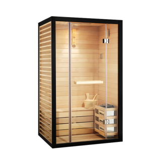 Metalezko markoarekin batera bi beirazko panel garden (alboak edo aurrealdea/alboa konbinatuta, diseinuaren arabera). Beira bikoitzeko diseinuak barrualdea argi naturalarekin edo gelako argiarekin gainditzen du, sauna txikietan ohikoa den "itxitasun" sentsazioa ezabatuz. Gainera, zure inguruarekin konektatuta egoteko aukera ematen dizu (adibidez, gertuko haurrak zaintzea) zure saio pribatuaz gozatzen duzun bitartean, pribatutasuna eta irekitasuna orekatuz.